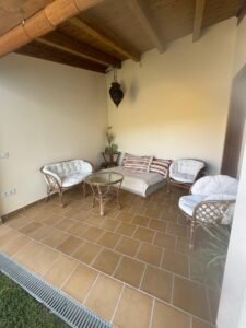 Cuenta también con un jardín con comedor bajo una pérgola, piscina con zona de hierba, aseo y un chillout como zona común de descanso y disfrute.
